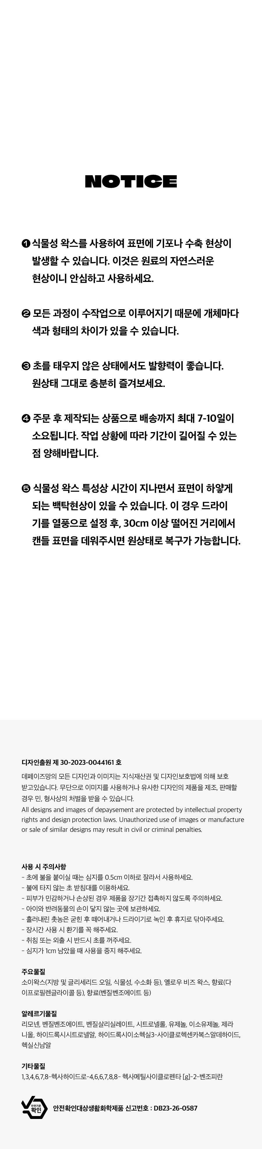 배송 기간 ㅣ 주말·공휴일 제외 최대 10일 (주문 확인 후 수작업으로 제품이 만들어지기 때문에 다소 시간이 소요됩니다.)