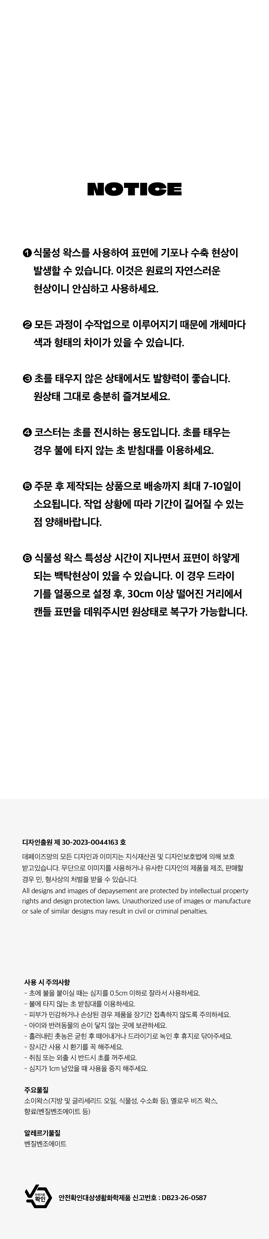 1. 표면에 생긴 기포는 재료의 특성상 발생하는 현상이기에 불량이 아닙니다.
