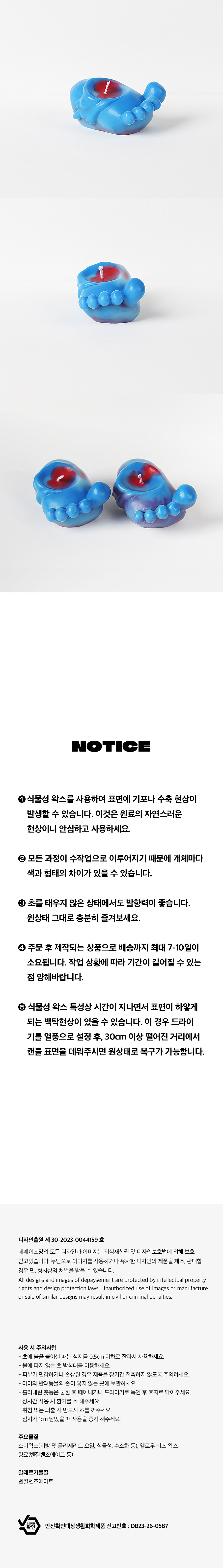 3. 일부 제품의 경우 여러가지 색상이 혼합되는 과정(온도와 시간의 차이)에서 개체별 색상 차이가 있을 수 있습니다.